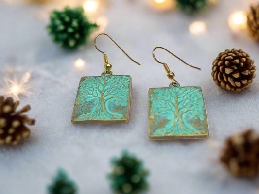 Lovely Patina Tree of Life Drop Earrings-by Artistry Jewelry