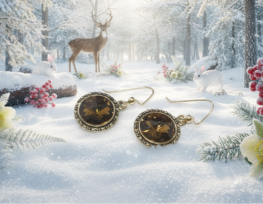 Lovely Smoky Topaz, Rivoli, Gold Drop Earrings- by Artistry Jewelry