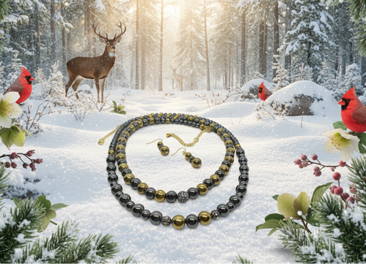 Gorgeous Gold & Black Hematite Two-Strand Beaded Necklace Set handcrafted by Artistry Jewelry