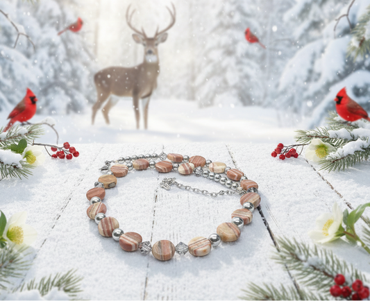 Lovely Pink Feldspar & Maifanite Jasper, Black, brown, Gray, Semi-precious, Beaded Necklace handcrafted by Artistry Jewelry