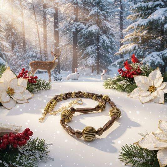 Gorgeous Dark Green, Crystal, and Gold Druk beads, One-of-a-Kind, Beaded Necklace Set- handcrafted by Artistry Jewelry