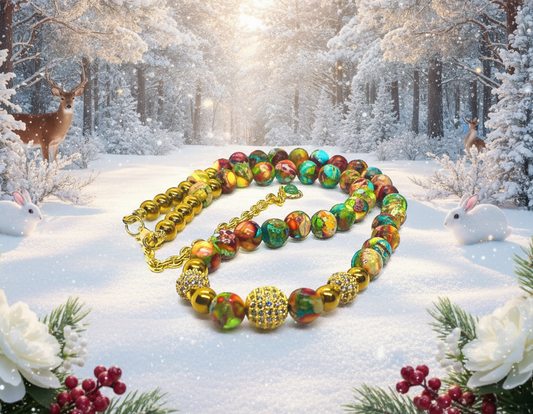 Fabulous Natural Green & Red Imperial Jasper, Gold Hematite, and CZ, Semi-precious, One-of-a-Kind,Beaded Necklace-handcrafted by Artistry Jewelry