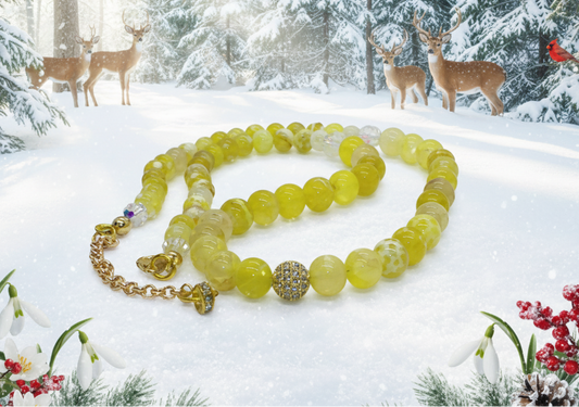 Fabulous Yellow Fire Agates and Cubic Zirconia Semi-precious, One-of-a-Kind, Beaded Necklace - handcrafted by Artistry Jewelry