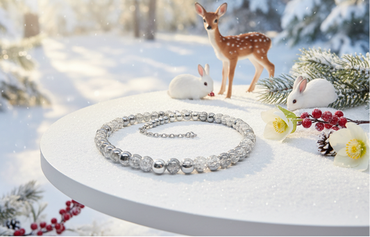 Beautiful Snow Cracked Crystal Beads and SP Hematite, Beaded Necklace Set-crafted by Artistry Jewelry