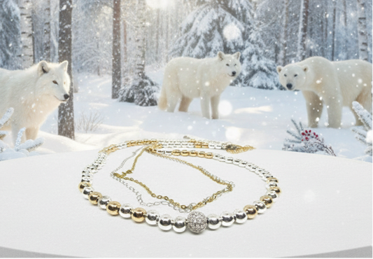 Gorgeous Handcrafted Two-Strand Silver and Gold Hematite and Chain Necklace with Cubic Zirconia Focal, Silver and Gold Tones- handcrafted by Artistry Jewelry
