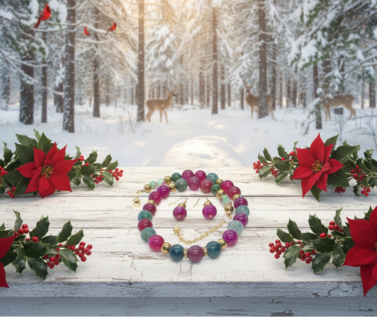Stunning Natural Berry Tourmaline, Olive Quartz, and Gold Hematite, One-of-a-Kind, Beaded Necklace Set-handcrafted by Artistry Jewelry