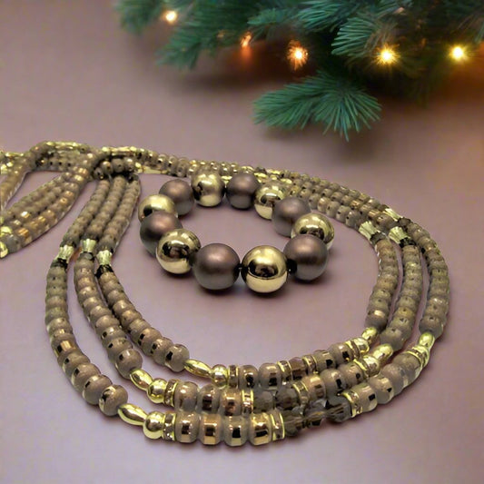 Stunning Golden Cocoa Matinee Necklace Set
