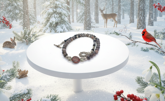 Gorgeous Natural Red Sesame, Black Lace Marble, and Crystal, semi-precious, One-of-a-Kind, Beaded Necklace-handcrafted by Artistry Jewelry