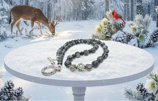 Gorgeous Black Diamond Crystal, Labradorite, Silver Hematite, and Baroque beads, Beaded Necklace - handcrafted by Artistry Jewelry
