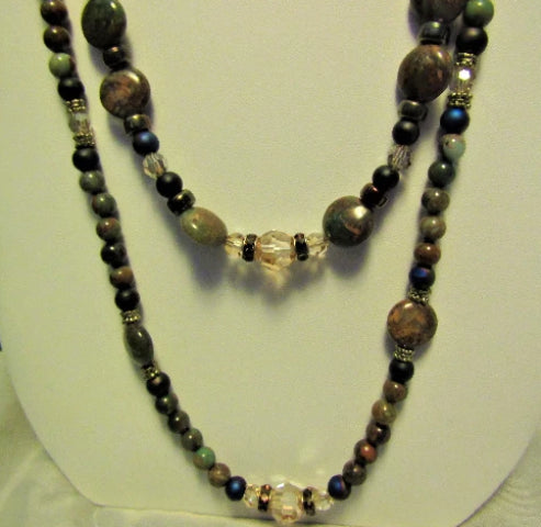 Amazing Crystal and Druk Brown Beaded, One-of-a-Kind, Necklace *handcrafted by Artistry Jewelry*