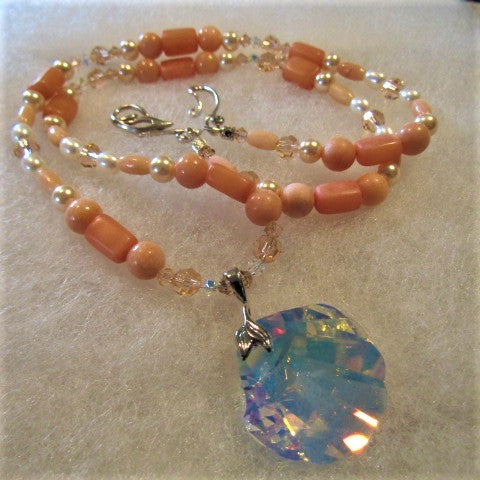 Shimmering Seaside Peach Shell 2 Matinee Necklace