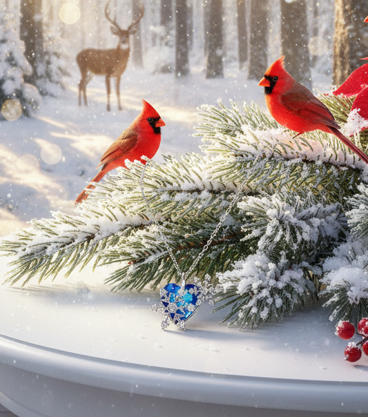Beautiful Blue Heart and Snowflake Necklace