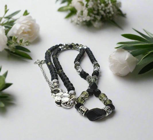Stunning Black Onyx, Black Diamond Crystals, and Black Pearl beads, Beaded Necklace A, One-of-a-Kind, handcrafted by Artistry Jewelry