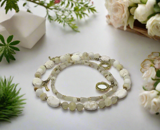 Tantalizing Opal Crystals, Natural Magnesite and Italian Onyx, Two-Strands, Beaded Necklace - crafted by Artistry Jewelry