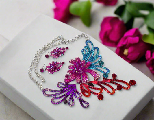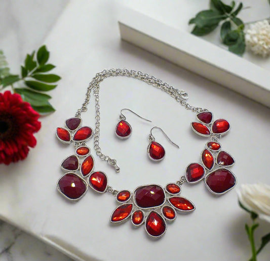 Lovely Jet Bicone Crystals, Red Feldspar, and Cubic Zirconia, One-of-a-Kind, Beaded Necklace Set-handcrafted by Artistry Jewelry