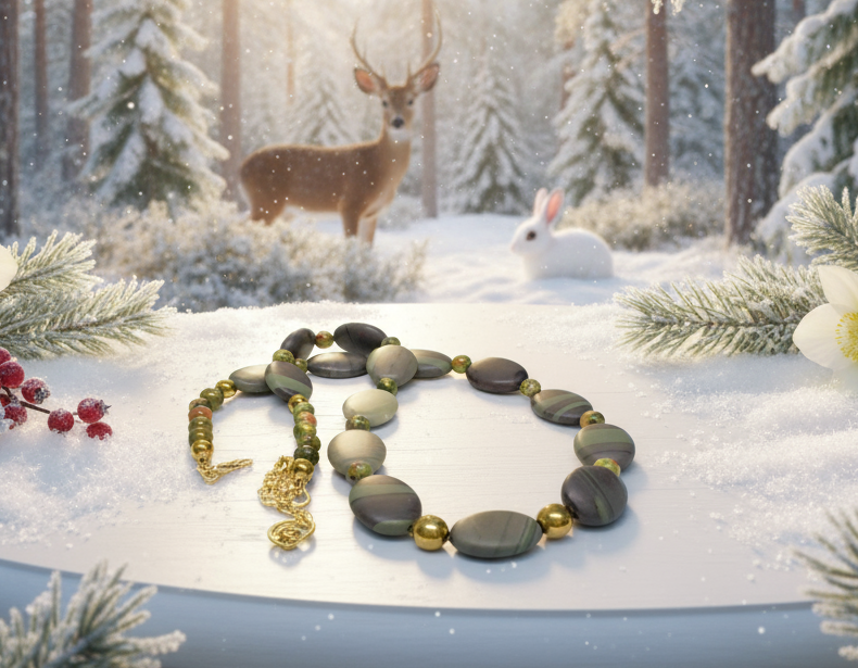 Alluring Mocha & Mint Jasper, Unakite and Hematite Beaded Necklace by Artistry Jewelry