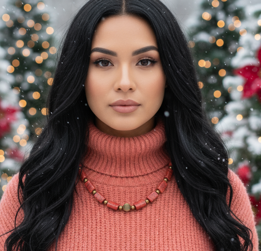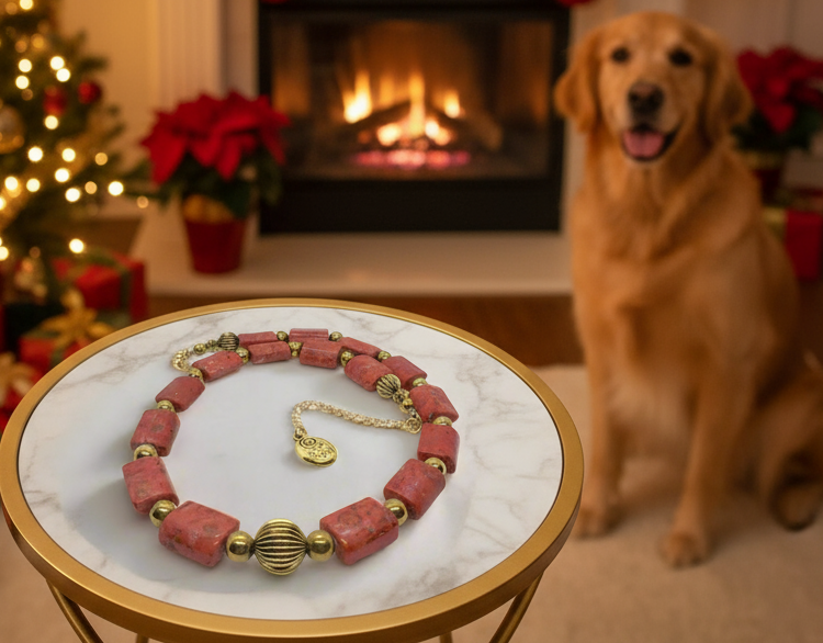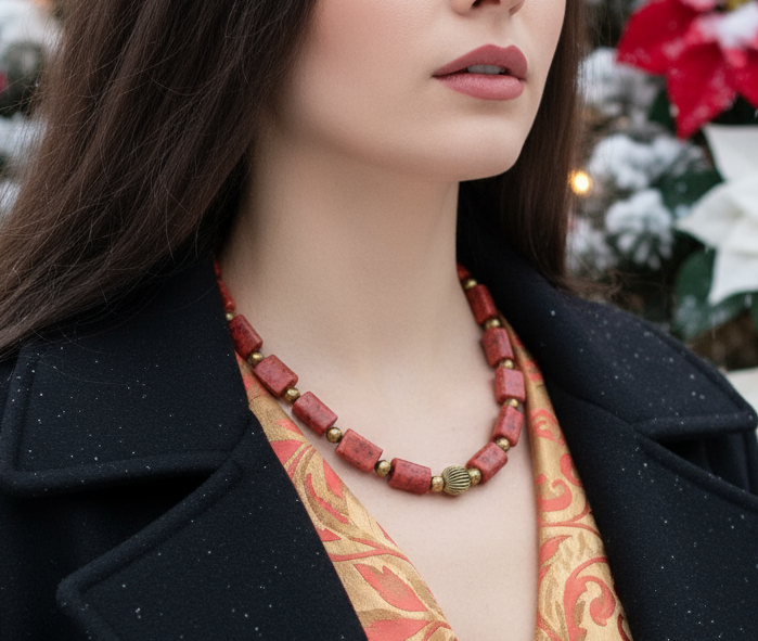 Beautiful Coral Rectangles, Antique Gold Rds, GP Hematite Semi-precious Beaded Necklace handcrafted by Artistry Jewelry