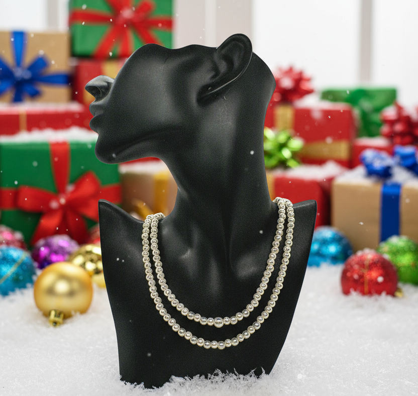 Beautiful Light Peach, Stardust, and Pearl, Two-Strand Beaded Necklace handcrafted by Artistry Jewelry