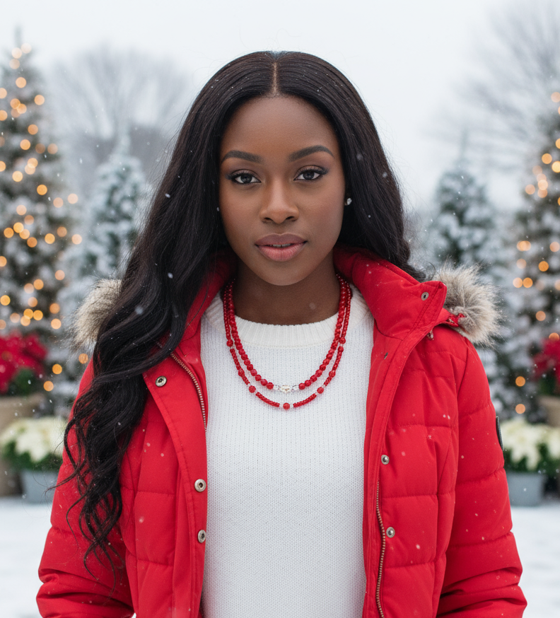 The gorgeous red crystal one-of-a-kind necklace has two fabulous strands that can be worn together or separately. This gives you three different styles for the price of one. This fabulous necklace set is crafted with Swarovski crystal rounds, a beautiful Swarovski Cosmic center bead, Natural Marble beads, red pearl round glass beads, and a lovely extender chain with a beautiful Rondell hanging from it to finish this design perfectly. This is a fabulous look for all those beautiful females out there. Remember it's a one-of-a-kind item. No one else will be wearing the same thing when you go out. It's all about you. The short strand is approx. 18.5-inches. The longer strand is approx. 20.5-inch.