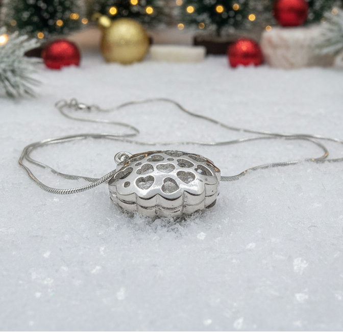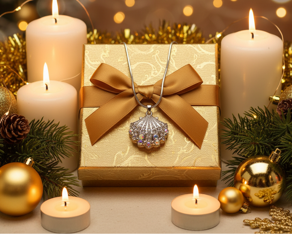 This beautiful rhinestone shell pendant necklace is perfect to wear anytime, anywhere. It makes the ideal gift for all those special people in your life. It also makes a perfect gift for yourself. Go ahead, you deserve it!! Comes in a gift box. Material: White gold plating. Approx. 18" in length Pendant: 1 x 3/4.