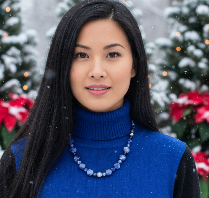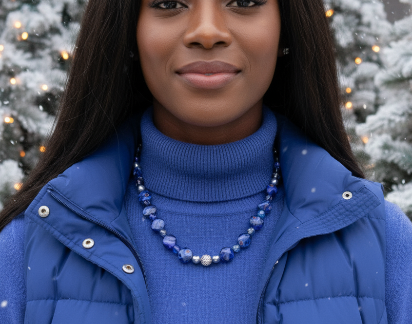 Beautiful Sea Blue Jasper, Firepolish Blue, Silver and Montana Blue, Beaded Necklace handcrafted by Artistry Jewelry