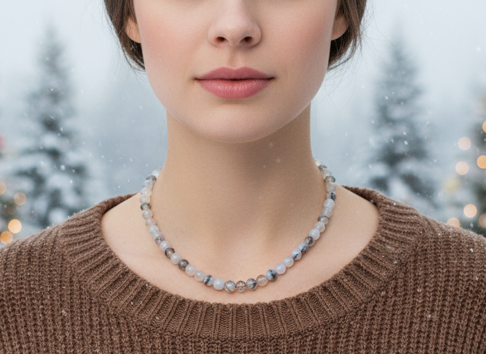 Captivating Black Dragon Vein Agate and Crystal Necklace