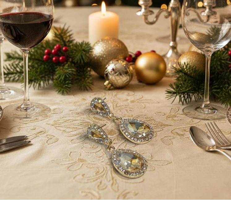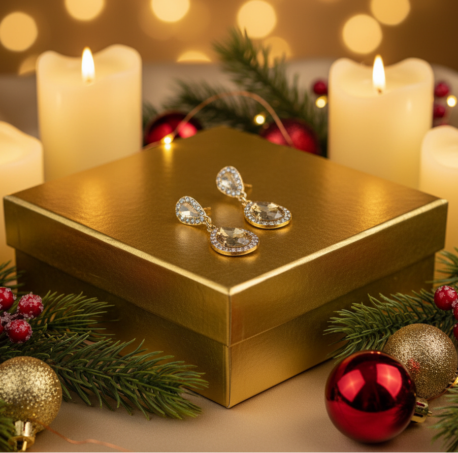 These are fabulous champagne colored rhinestone earrings encircled with clear rhinestones in a teardrop. Wear them and feel like a queen. It makes the perfect gift for all those special people in your life. It also makes a perfect gift for yourself. Go ahead, you deserve it!! Material: Zinc Alloy. Color: champagne, clear. Approx. 46x14 mm.
