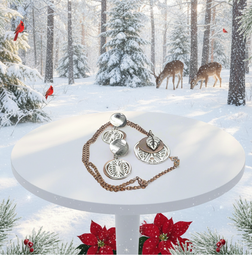 Charming Silver Leaves and Copper Discs, Copper Chain Necklace Set One-of-a-Kind-handcrafted by Artistry Jewelry