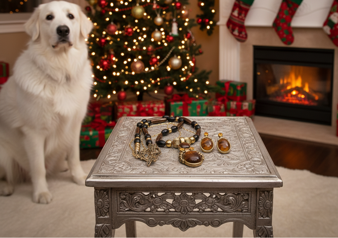 Charming Vintage Brown and Antique Gold Romance Beaded, and Chain Necklace Set with Hematite, One-of-a-Kind - handcrafted by Artistry Jewelry