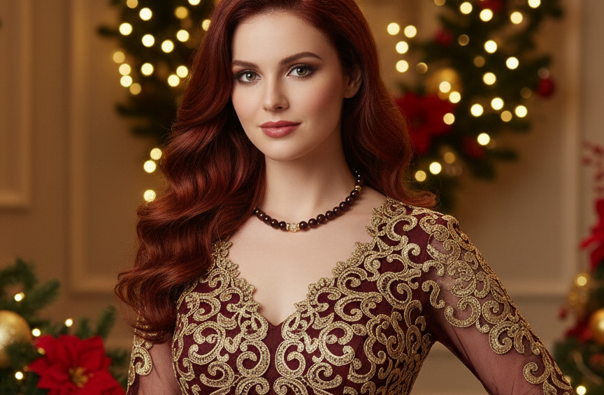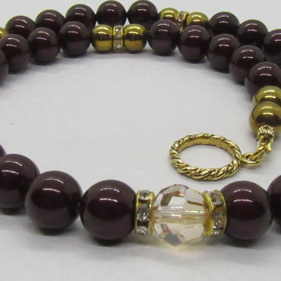 Beautiful Golden Shadow Crystal, Maroon Pearl and Gold Hematite Semi-precious Necklace-handcrafted by Artistry Jewelry