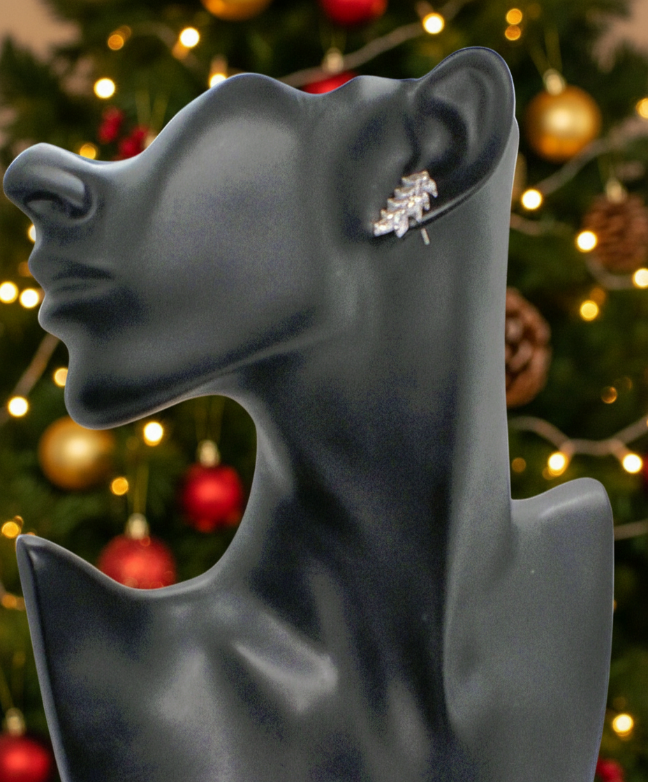 Exquisite Silver Cubic Zirconia Leaf Drop Earrings