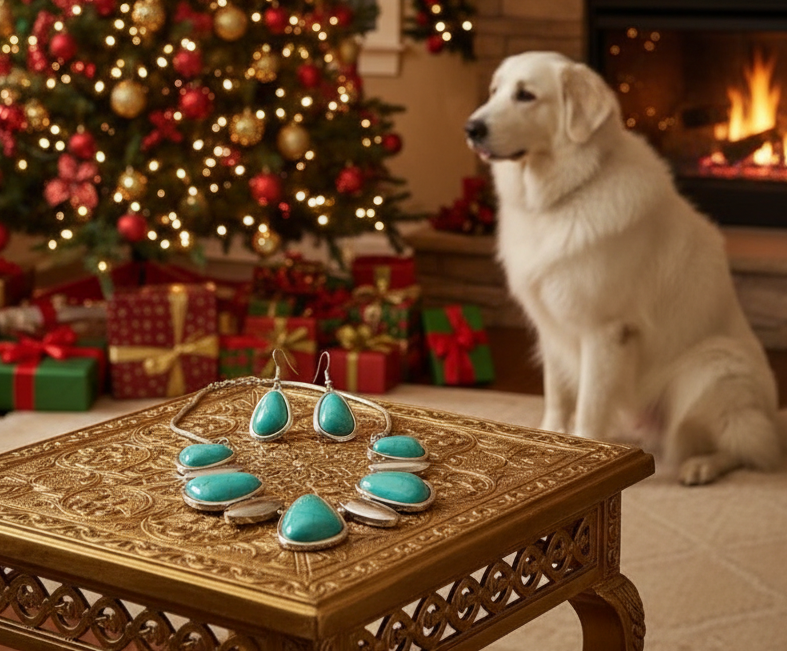 This fabulous turquoise and silver necklace set makes the perfect statement for anyone. Lovely turquoise drops that are accented with silver drops to complete the statement. Also, gorgeous matching earrings to complete this set. A wonderful gift for anyone, or just a must-have item for yourself. Comes in a gift box. Material: Rhodiumized / Turquoise Imitation Stone / Lead&nickel compliant, LENGTH : 18" + EXT, • EARRING : 1 5/8"• DROP : 1 3/8"• SILVER COLOR/TURQUOISE.