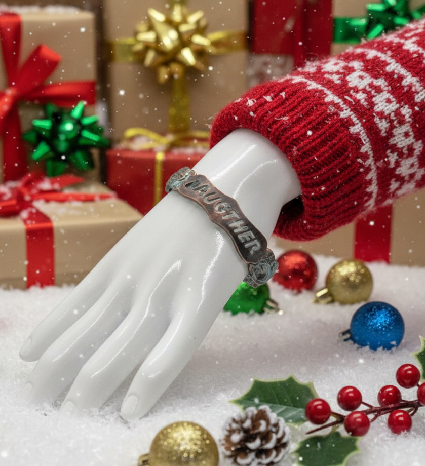 This is a fantastic patina daughter bracelet that can be given to that special daughter in your life. No matter what age it sends a message of love. Comes in a gift box. Colors: Brown, Patina. Material: Lead & nickel Compliant / Metal / Stretch Bracelet/ Copper.