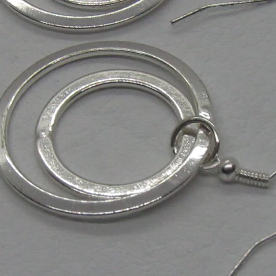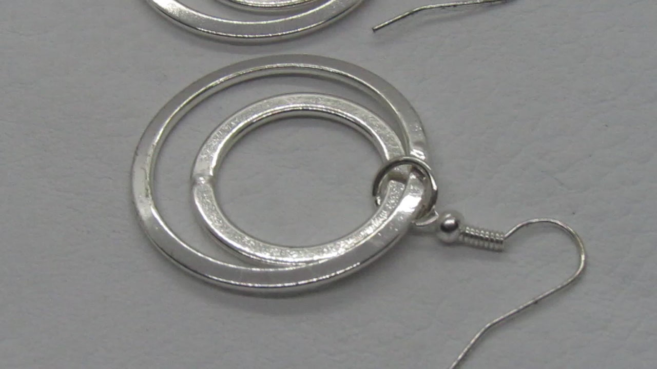 Fantastic silver circles that hang gracefully from your ears say it all. Two circles within each other for the everyday look or for a look that takes you into the night. It makes the perfect gift for all those special people in your life. It also makes a perfect gift for yourself. Go ahead, you deserve it!! Does not come in a gift box. Material: Silver Tone / Lead Compliant / WIDTH X LENGTH: 1 1/8" X 1 7/8".