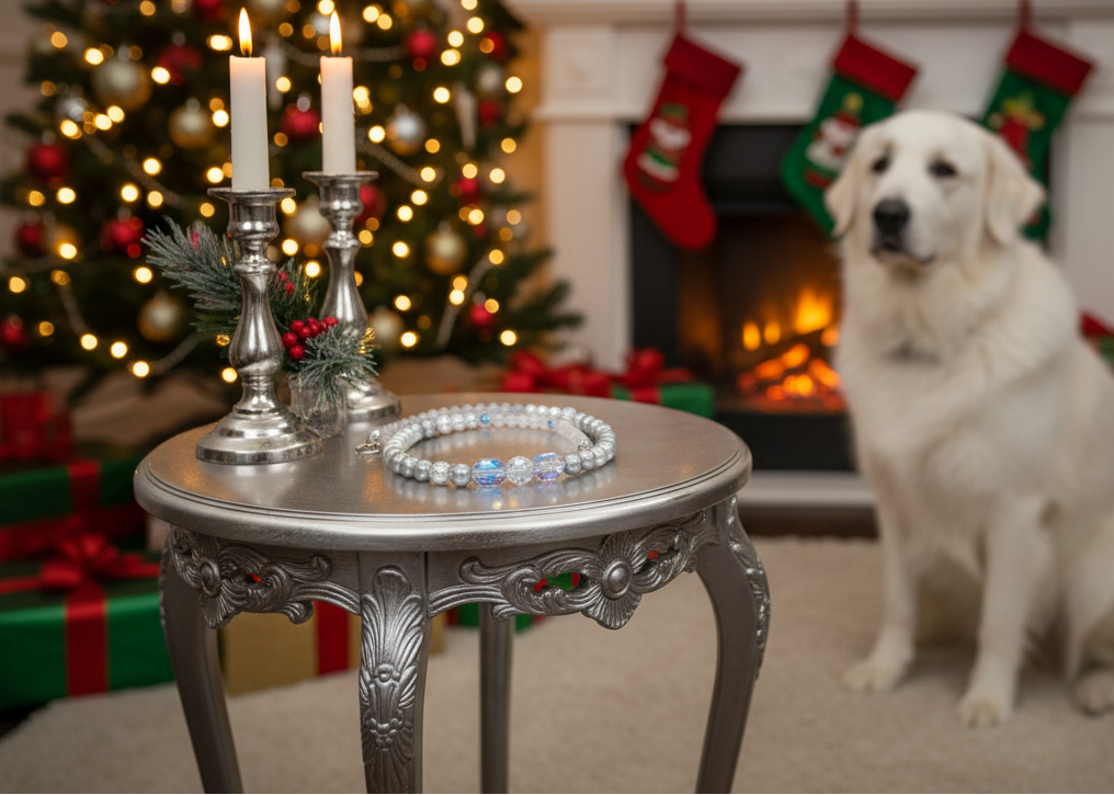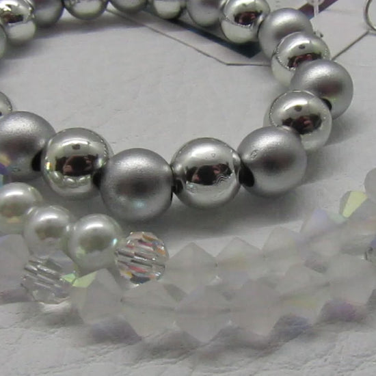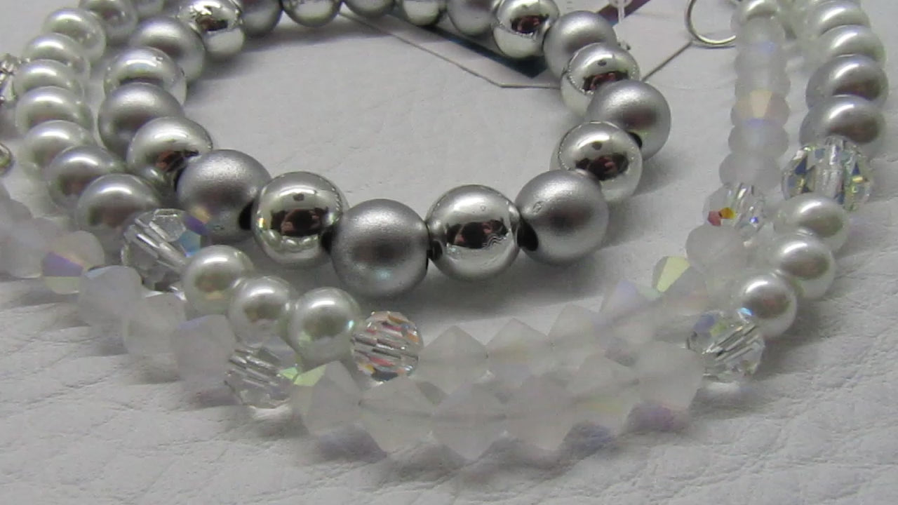 Beautiful Pearl Silver Beads with Graphic Crystals, One-of-a-Kind, Beaded Necklace - handcrafted by Artistry Jewelry