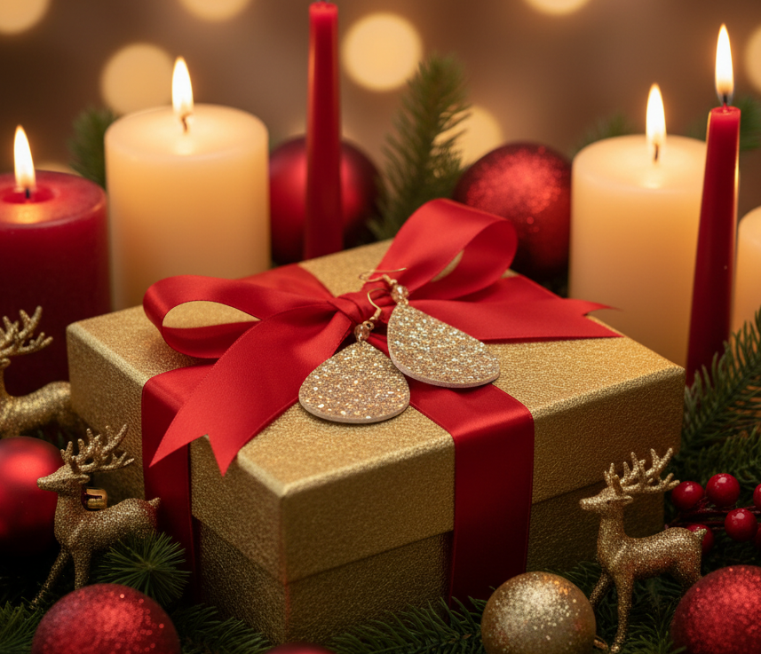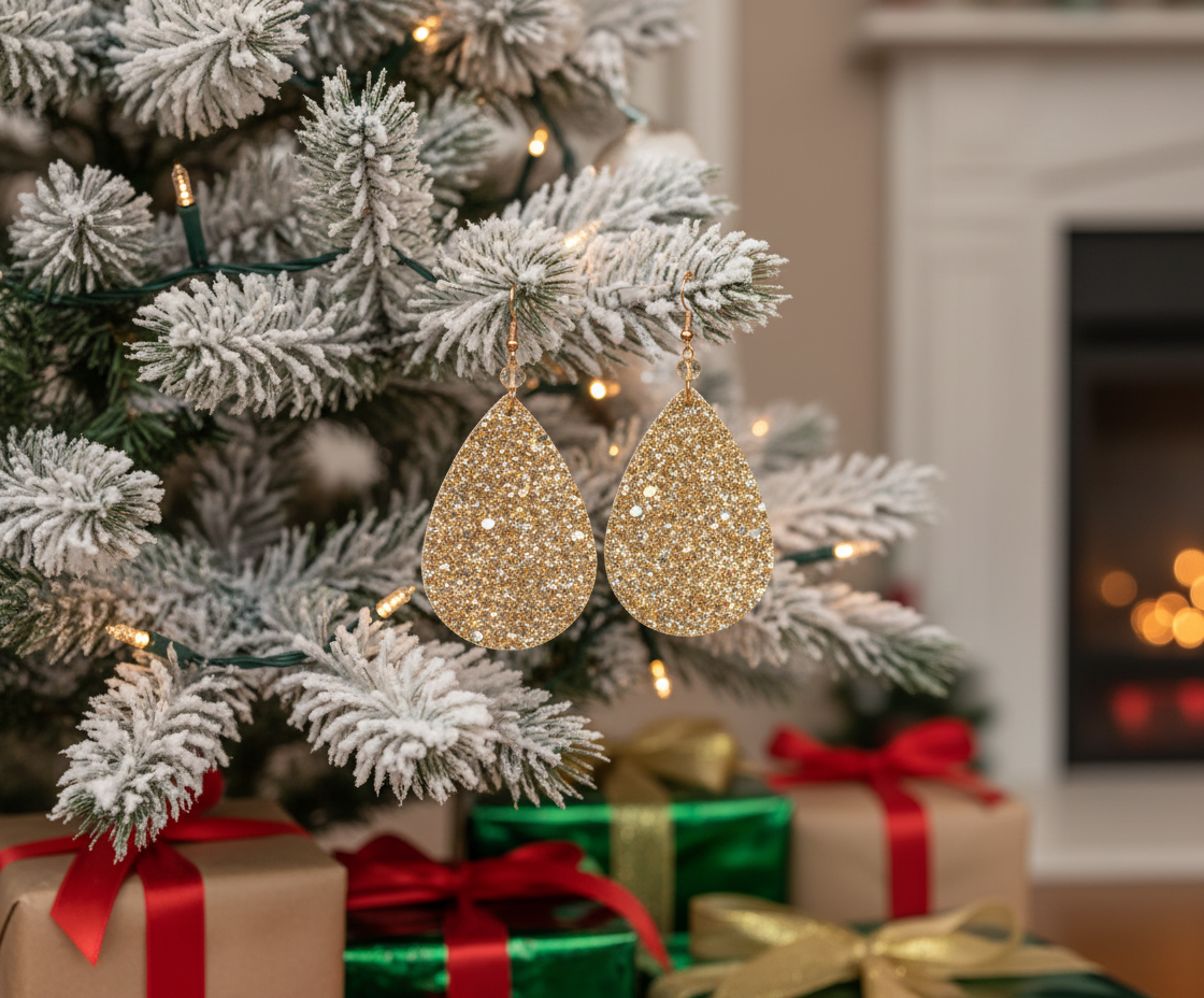 These earrings are the fun of the party. Teardrops made of leather and sprinkled with glitter to add a touch of glamour. They make the perfect gift for all those special people in your lives. It also makes a perfect gift for yourself. Go ahead, you deserve it!! Does not come in a gift box. Color: multi, gold. Approx. 1-1/2 " x 2-1/4" long.