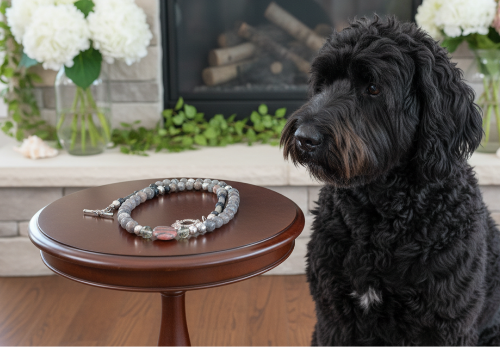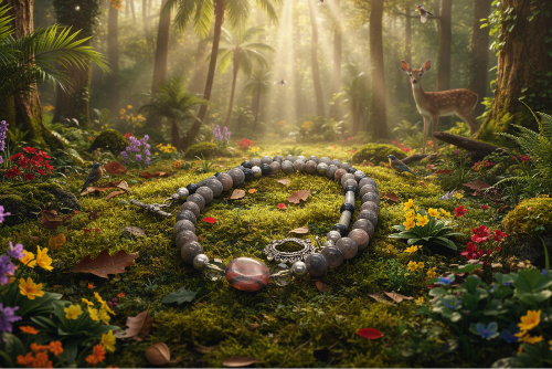 - 🌿 Materials: Red Sesame Jasper, Black Lace Marble, Swarovski, Satin Pearls.