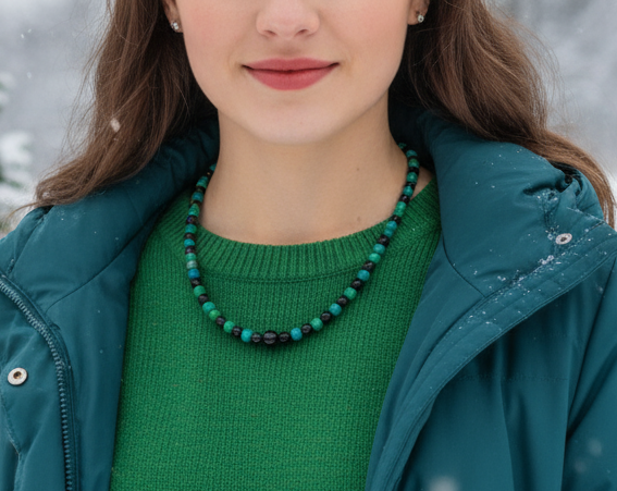 Stunning Black Onyx and Chrysocolla beads Necklace