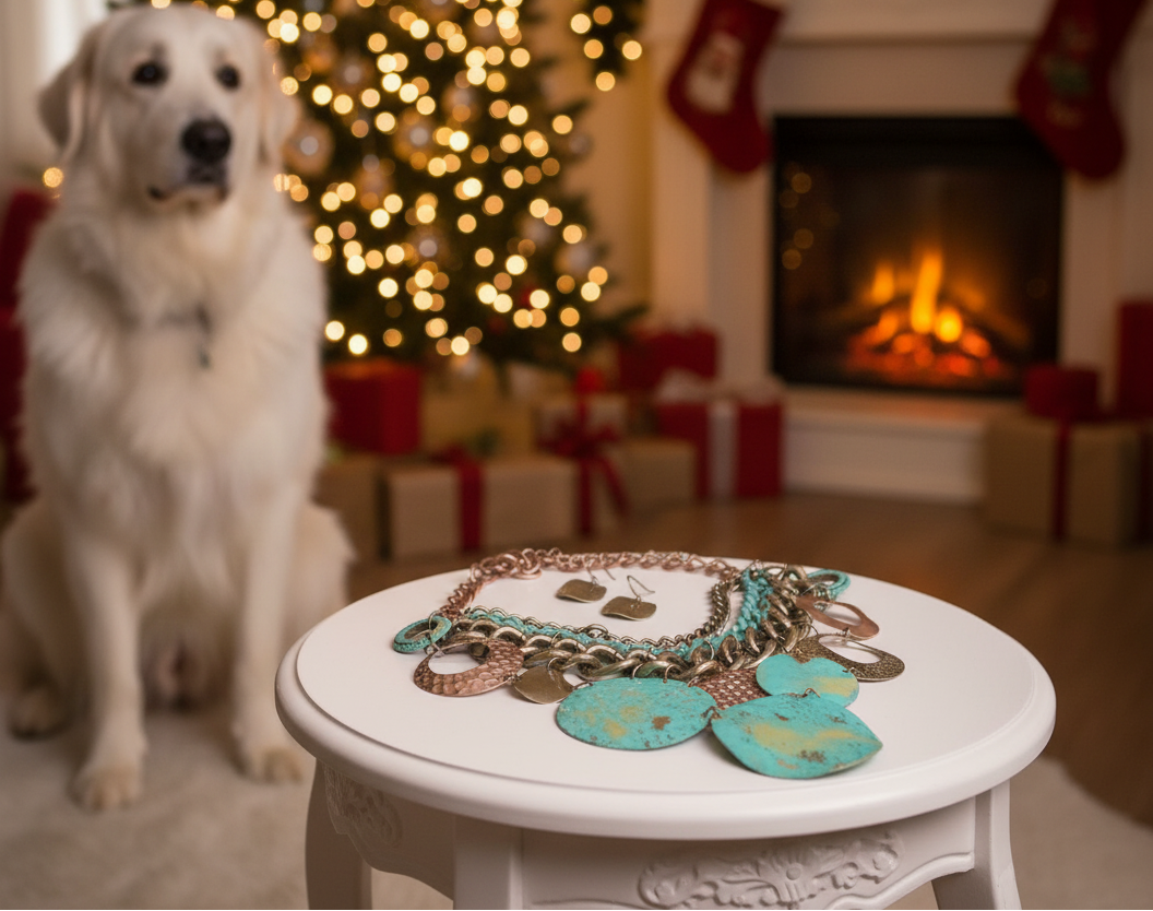 This is a fantastic necklace set with shapes of green patina and other colors. Multi-flat, chained, and ready to go anywhere. It makes the perfect gift for all those special people in your life. It also makes a wonderful gift for yourself. Go ahead, you deserve it!! Comes in a gift box. Color: multi-colored Approx. 17" in length.