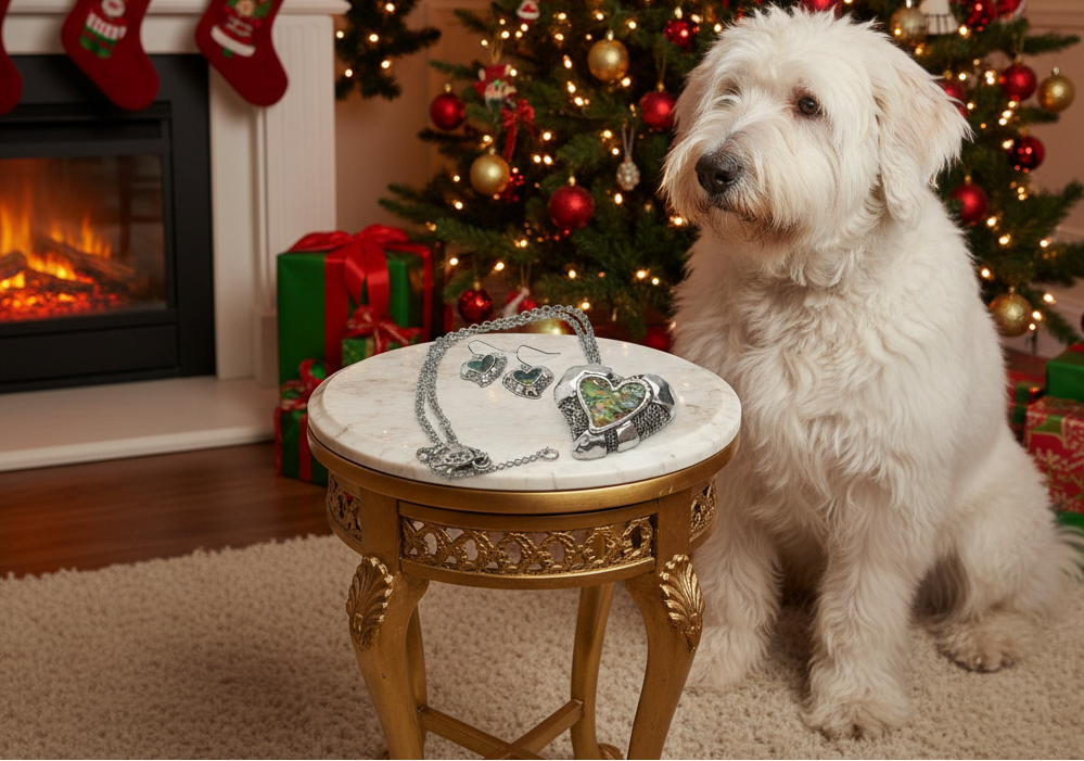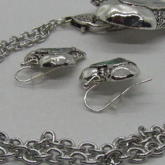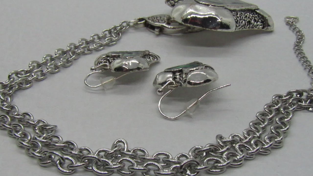 Lovely Abalone Heart Pendant, Silver Rolo Chain Necklace with Matching Earrings-by Artistry Jewelry