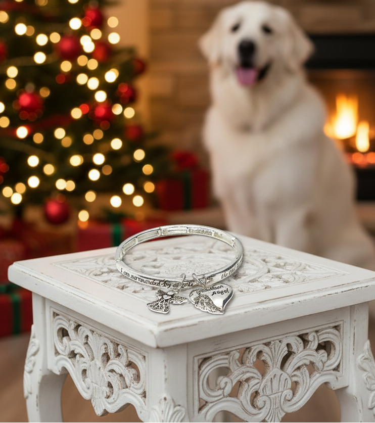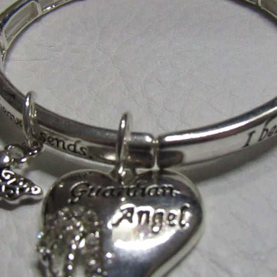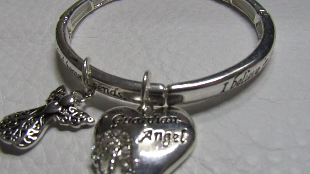 This is a religious inspirational stretch bracelet with lovely charms of an angel and a heart. It can be worn anywhere at any time. Makes a wonderful gift for that special person or for yourself. Comes in a gift box. Color: silver.