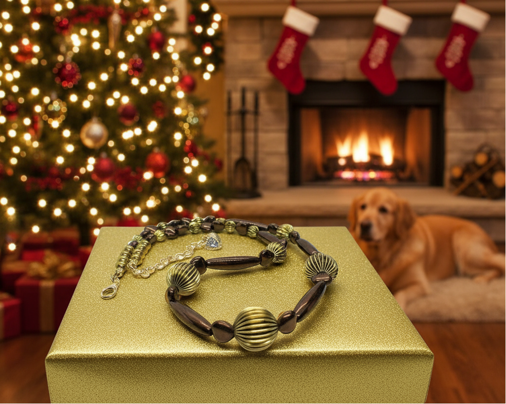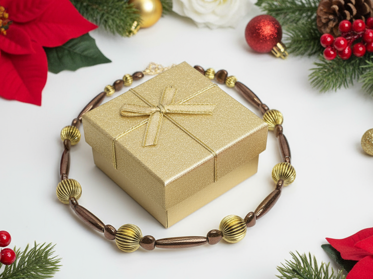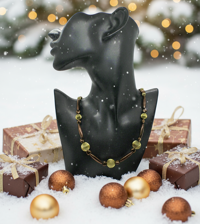 This is a beautiful copper and gold necklace. It has lovely Copper Heart glass beads and as a focal, it has a stunning GF Pewter Corrugated Round with contrast to the lovely gold-plated Hematite beads. It flaunts a beautiful Cubic Zirconia heart charm on the end of the extender to give the back of your neck an added touch of loveliness. This is the piece of jewelry that everyone wants for those special events or just going out for lunch. It will make a statement. It also makes the perfect gift to give to that special person or maybe just a gift for you. Make a statement with this gorgeous piece of jewelry. Comes in a gift box. Length: approx. 20 inches. Extender: 3"