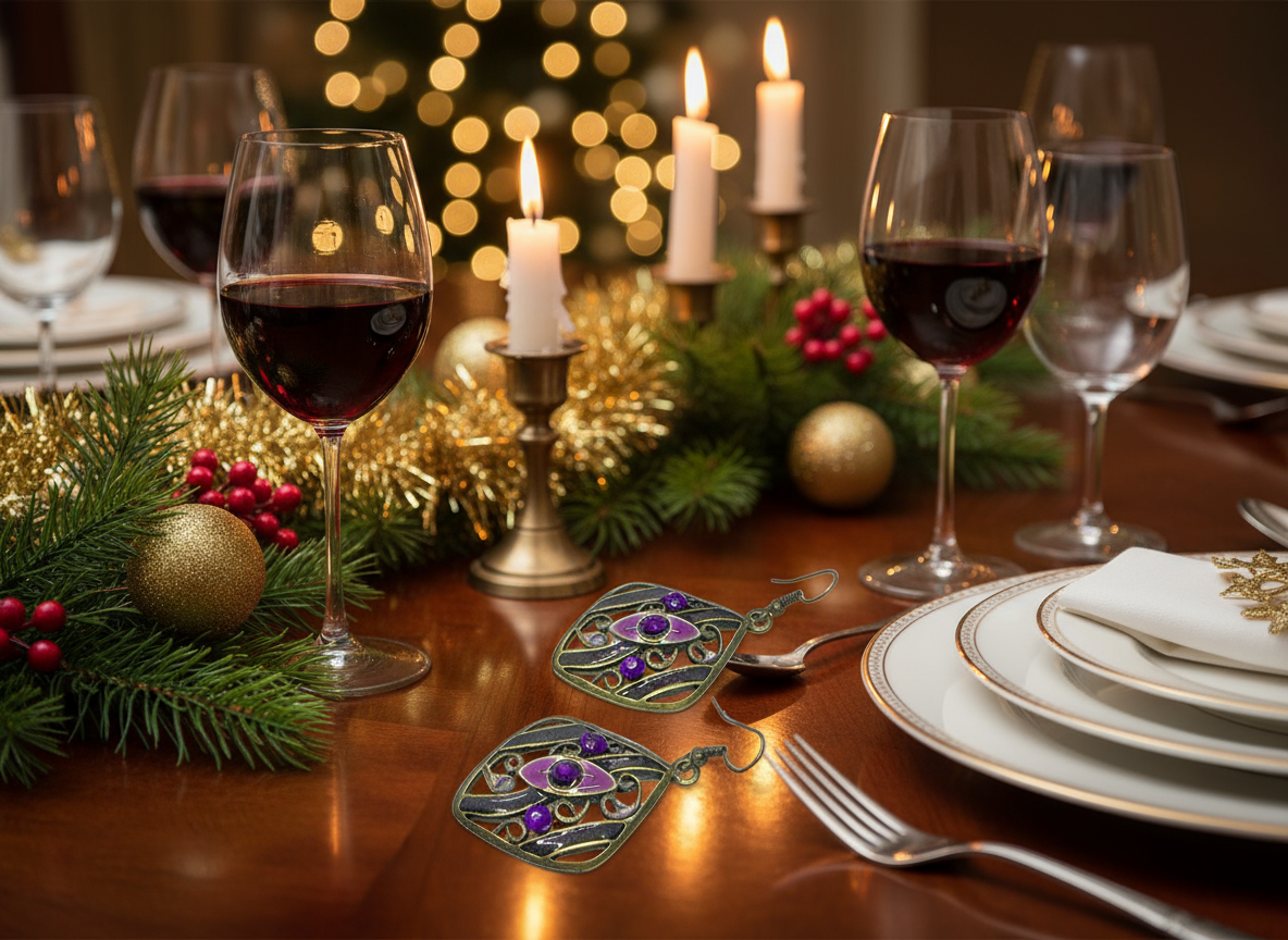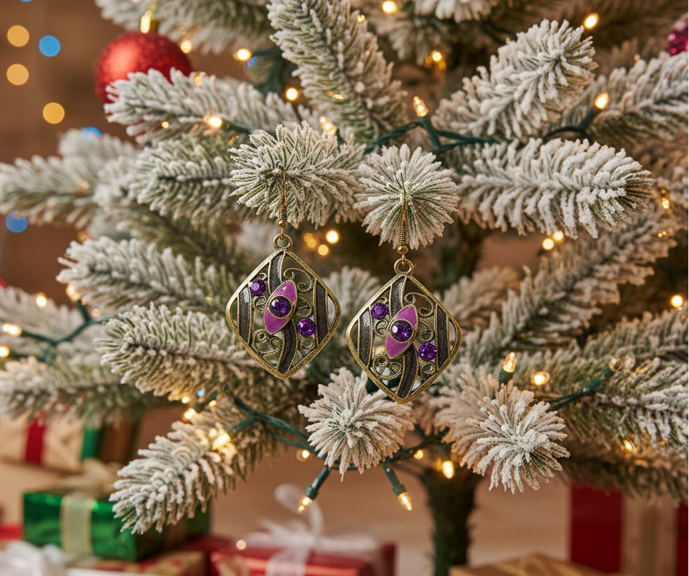 This is a lovely pair of bronze and purple metal drop earrings. Makes a wonderful gift for anyone. Does not come in a gift box. Drop is approx. 1-1/2".