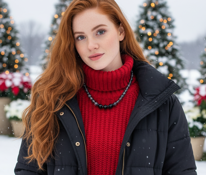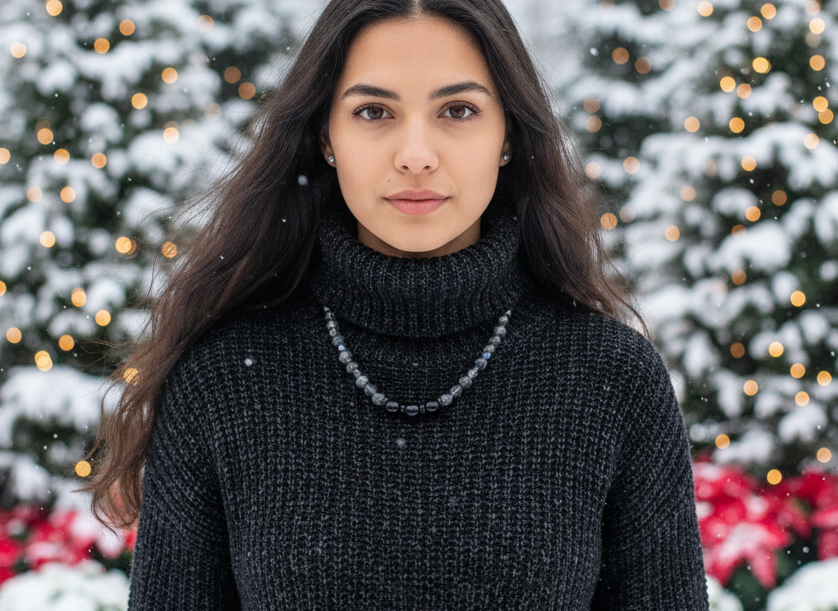 This one-strand one-of-a-kind necklace flaunts the beauty of shades of black completely. Designed to complement the black scheme, it is handmade with natural gems and Preciosa crystals. Simply stunning. Wear it anywhere with anything you have in your closet. It is the perfect gift for that special person or yourself. It is crafted with Black Onyx, Preciosa Crystals, and Czech crystal rhinestone rondelles. Remember, it's a one-of-a-kind item. No one else will be wearing the same thing when you go out. It's all about you. Comes in a gift box. Length is approx. 19 inches.