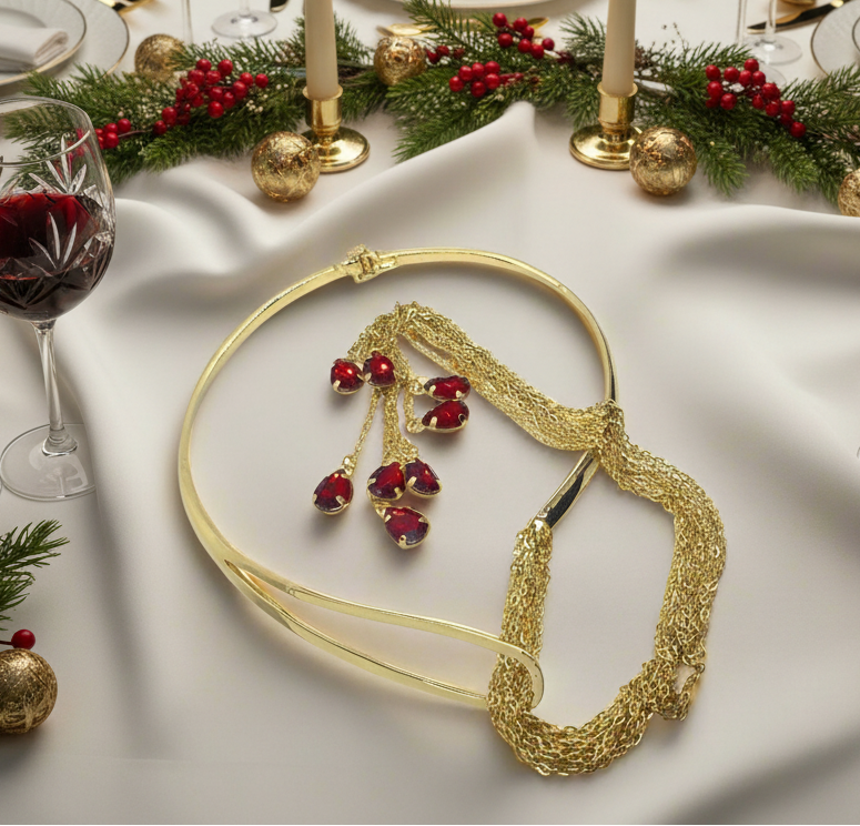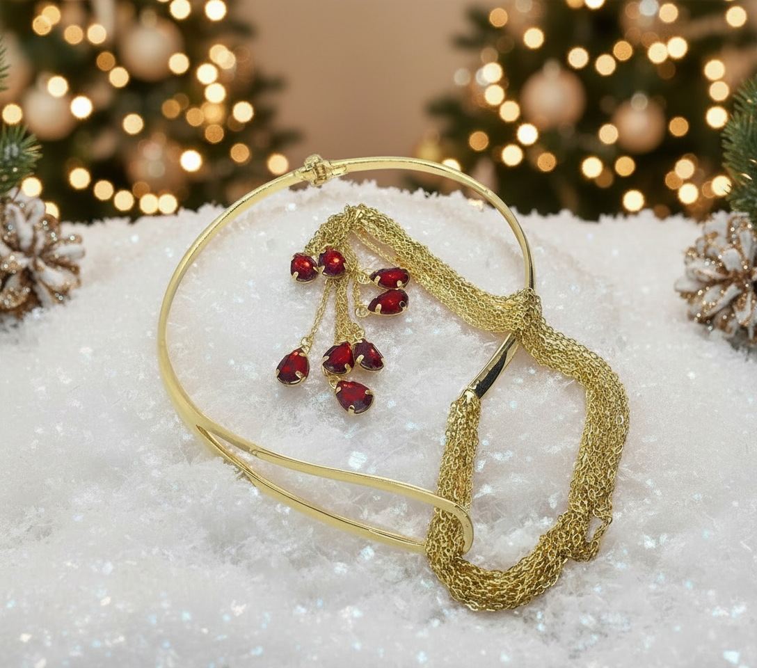 This is a gorgeous multi-chain fringe choker necklace. It is perfect in the way it lays across the neck and flows downward. It is so special that you can wear it any place or at any time. It makes the perfect gift for all those special people in your life. It also makes a perfect gift for yourself. Go ahead, you deserve it!! Comes in a gift box. Material: metal chain, teardrop glass stone. Size: 6-inch diameter, 15-inch drop. A fringe chain slides through the collar.