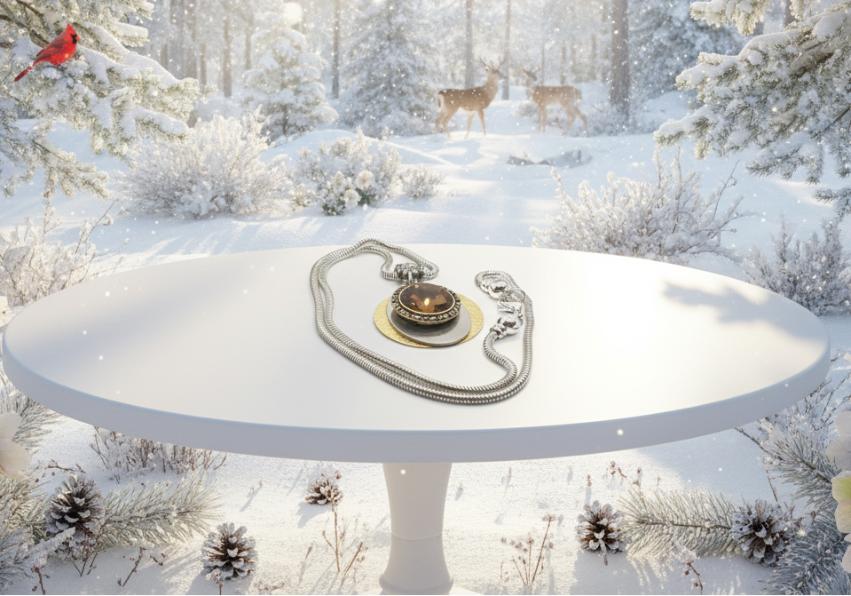 Smokey Topaz Rivoli Pendant, and Silver Snake Chain Necklace- by Artistry Jewelry