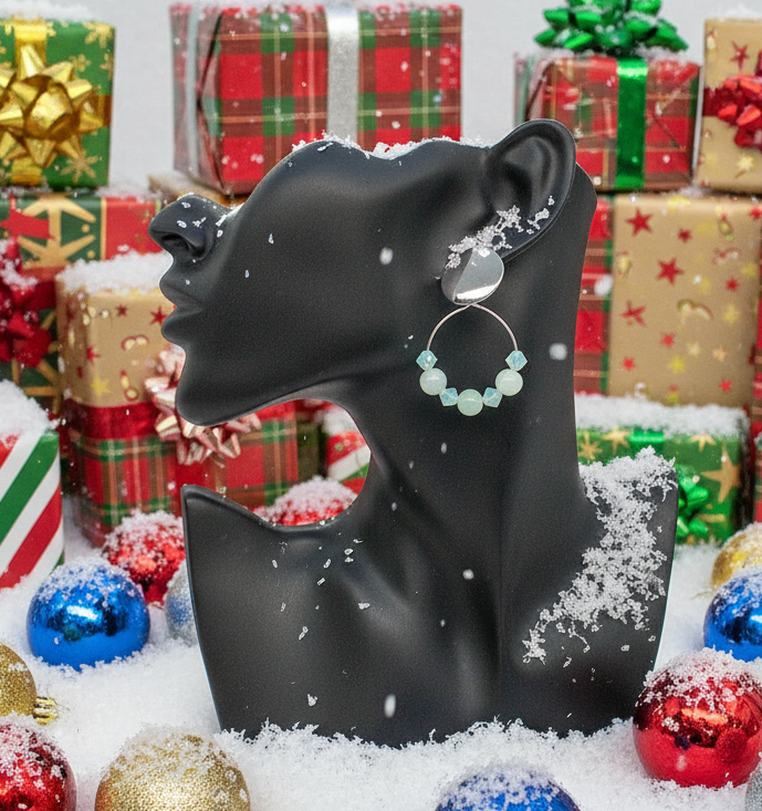 Discover these stunning earrings with captivating Burness Jade beads, expertly crafted with Preciosa Chrysolite Opal crystals. The dangle design boasts a trendy robust flair and the stud is 304 non-tarnish stainless steel that is 20mm round making them stylish and comfortable to wear. Makes the perfect gift for that special person or yourself. Comes in a gift box.