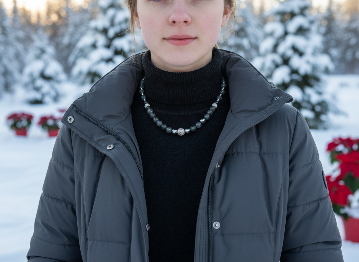 This is a beautiful Natural Labradorite and Hematite SP necklace. As a special focal it has three stunning platinum-colored Cubic Zirconia Micro PAVE rounds with contrast to the lovely black glass beads. It flaunts a small charm on the end of the extender to give the back of your neck an added touch of loveliness. This is the piece of jewelry that everyone wants for those special events or just going out for lunch. It will make a statement. It also makes the perfect gift for that special person or maybe for you. Make a statement with this gorgeous piece of jewelry. Comes in a gift box. Length: approx. 19 inches. Extender: 3"