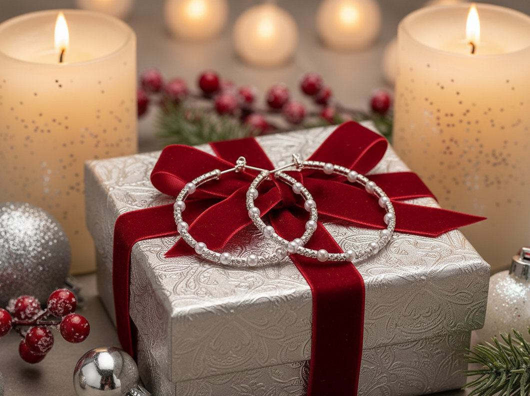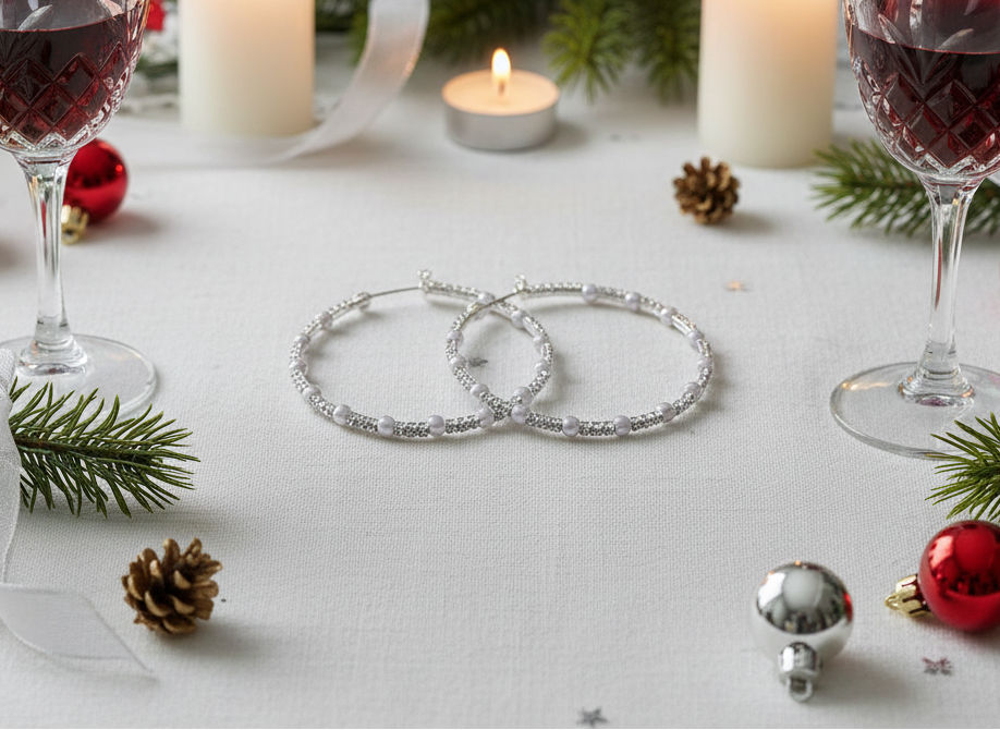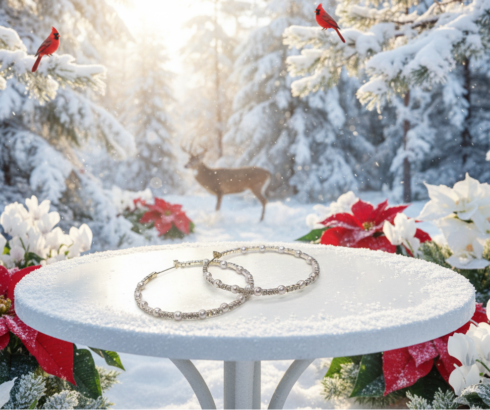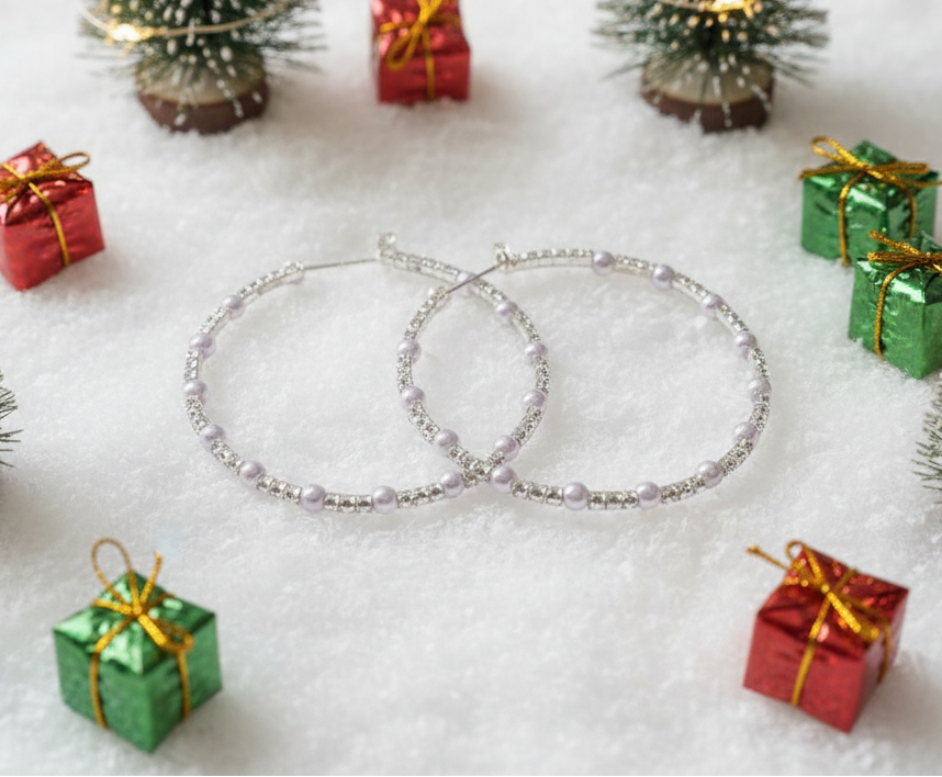 These earrings have lovely rhinestones and mini imitation pearls on a coil wire hoop. They can be worn anywhere at any time for any event. They make the perfect gift for all those special people in your life. They also make a perfect gift for yourself. Go ahead, you deserve it!! Does not come in a gift box. Post pin. 2 - 1/8 inch drop.
