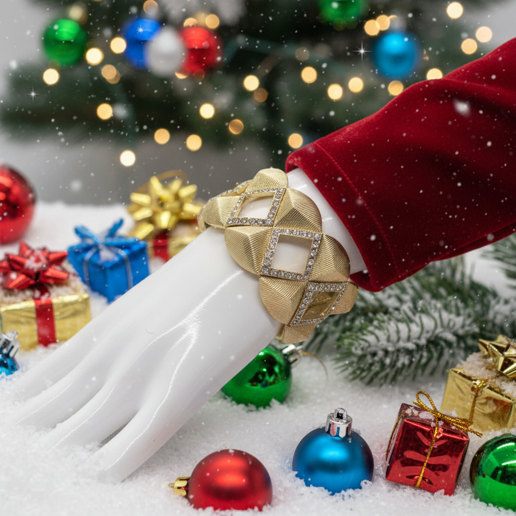 Beautiful gold-colored and rhinestone bracelet for those special nights. You can take this bracelet with you anywhere, and it will flaunt your beauty. It makes the perfect gift for all those special people in your life. It also makes a wonderful gift for yourself. Go ahead, you deserve it!! Comes in a gift box. Bracelet measures approximately. 8" long. Color: Gold/clear.